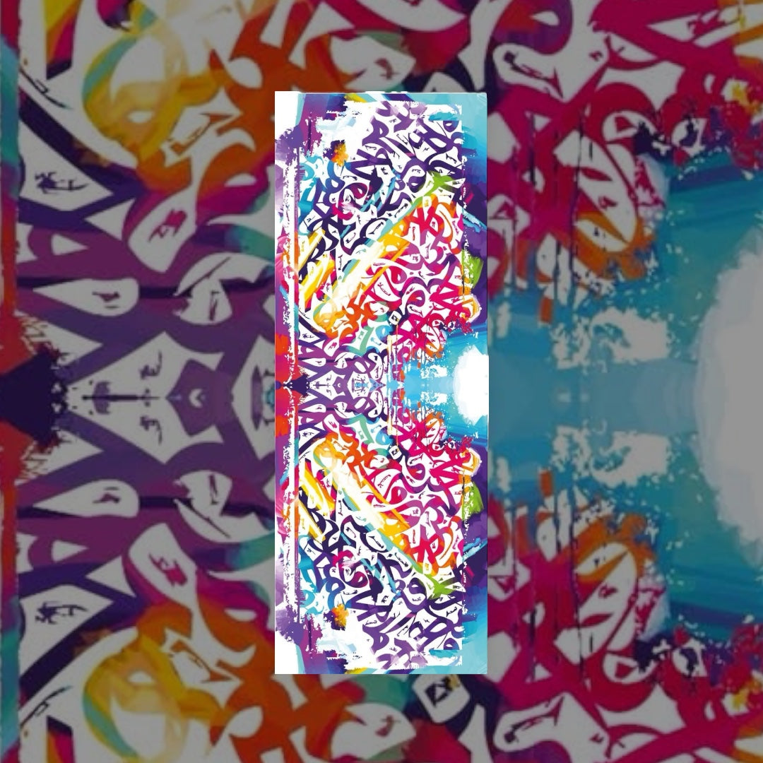 Meaning joy or happiness in Arabic. The vibrant mix of colors, energetic calligraphy, and artistic splashes gives it a lively and cheerful feel.