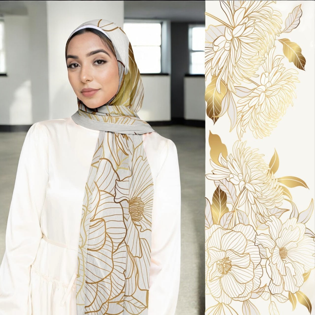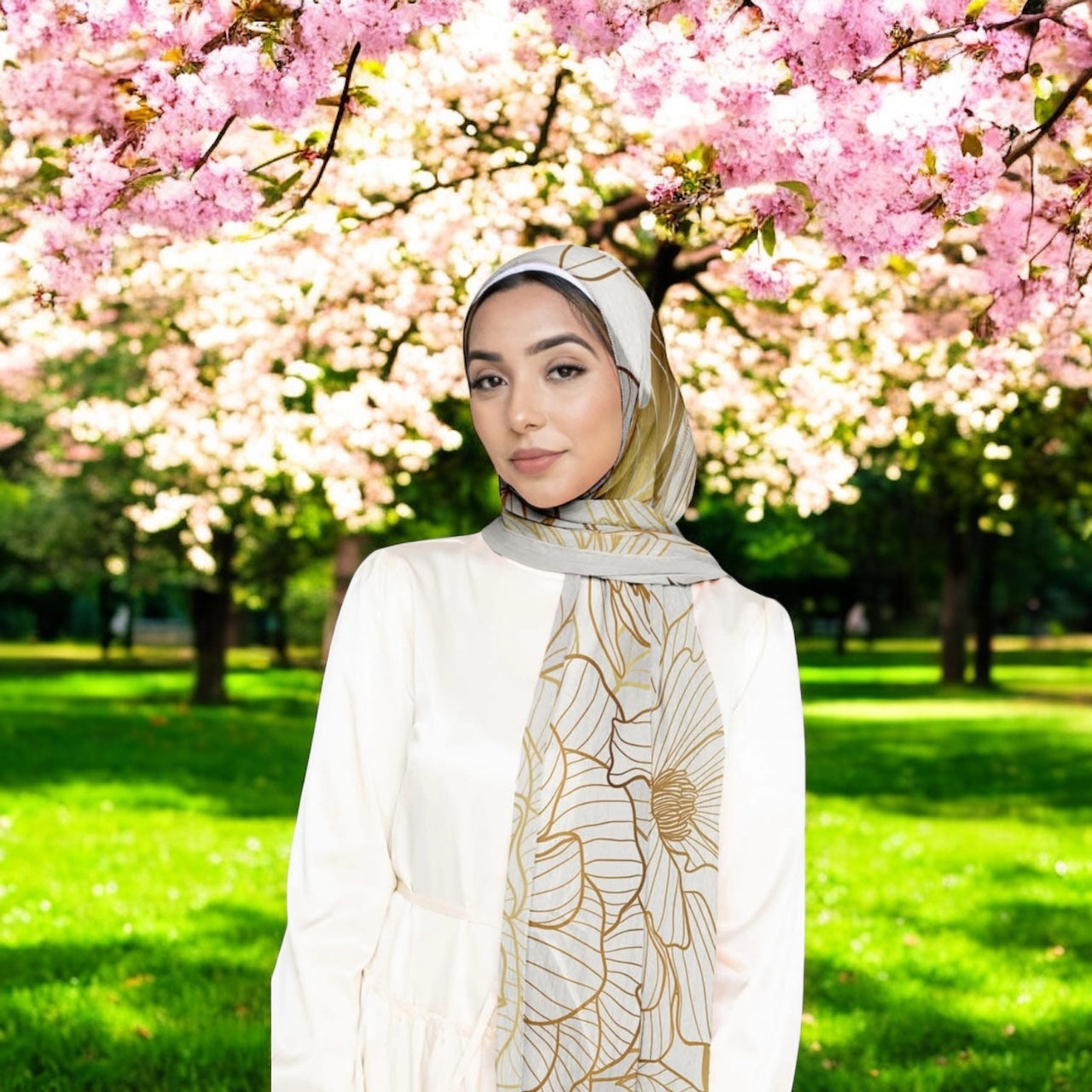 Fresh as the first light of day, Sahar is the calm before the bloom. Subtle gold linework flows across the fabric like morning rays kissing spring petals.